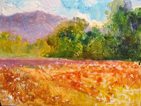 both 6x8" oil on boardGave myself a challenge this week. Tried to keep these little ones in a high key - meaning nothing darker than a value 7 in artist terms. I was getting heavy handed and dark. I felt just like a joke I heard on the Click and Clack radio show (NPR) - "She's so dense light bends around her." These really did help the ham fisted look I had been using on recent paintings.